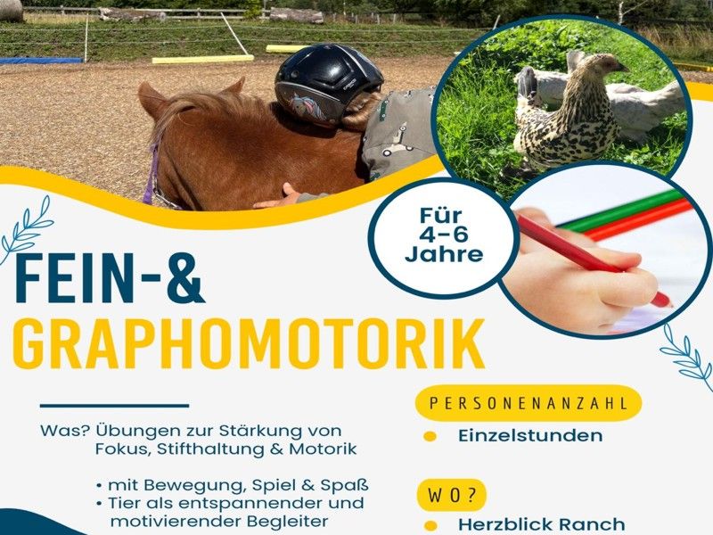 Für Kinder die Bewegung zum Schlüssel fürs Schreiben werden soll. Hüpfen, Balancieren und Ponyaktivitäten.
